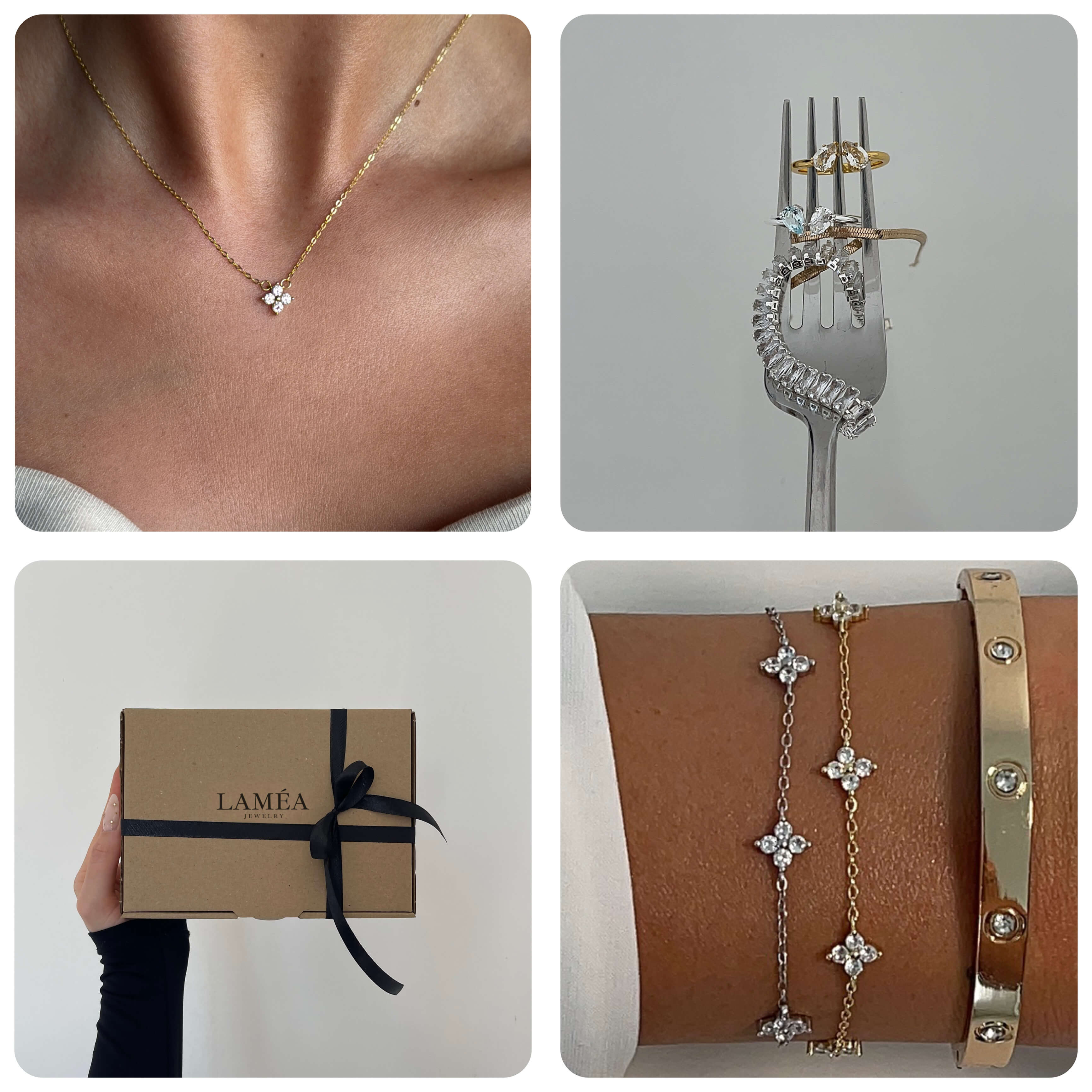 Unsere Schmuckstücke werden aus 925er Sterlingsilber gefertigt und mit einer hochwertigen 14k- oder 18k-Vergoldung veredelt, für einen edlen Look mit warmem Glanz.